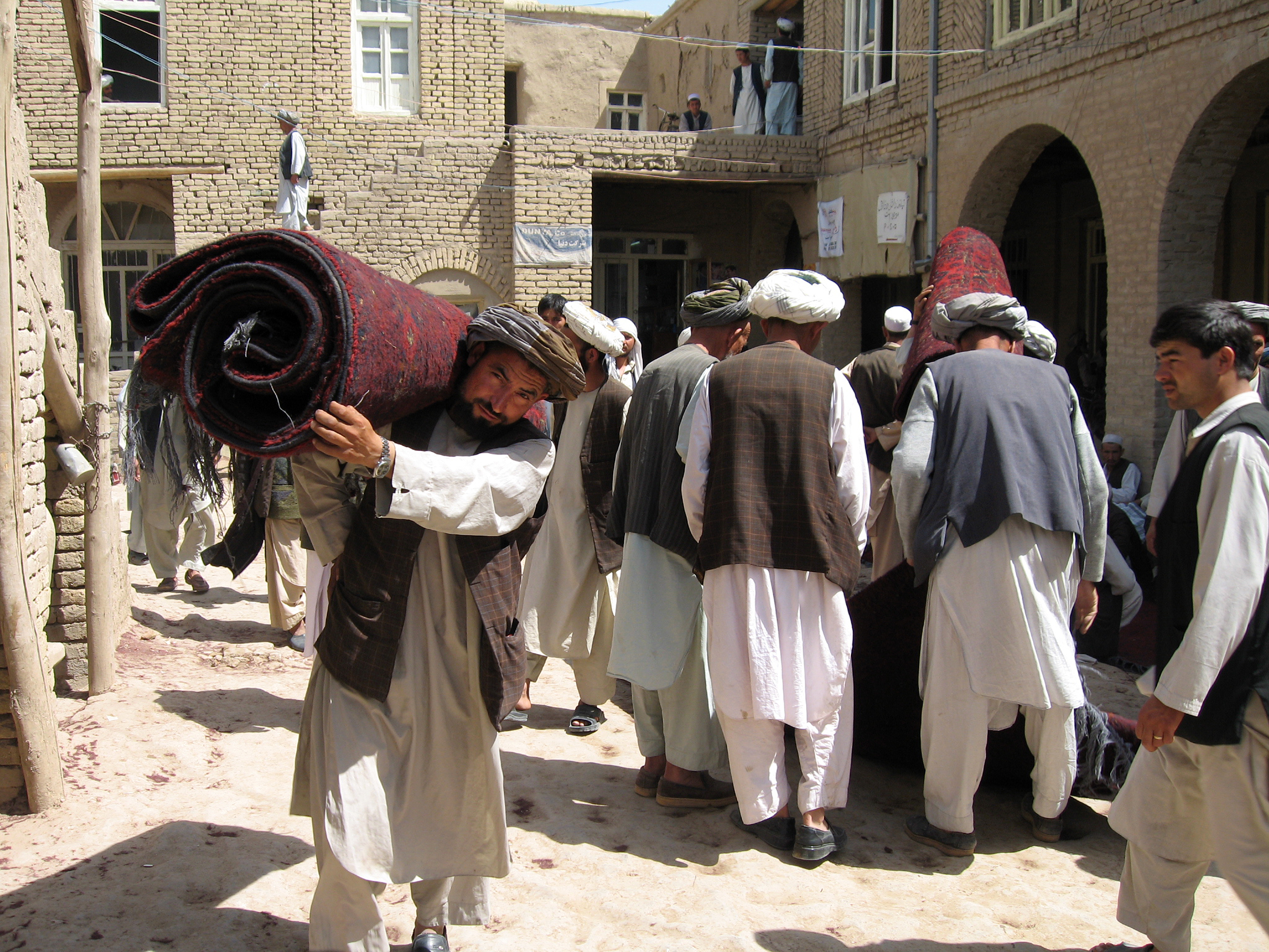 Scene from the carpet market in Andkhoy in northern Afghanistan.