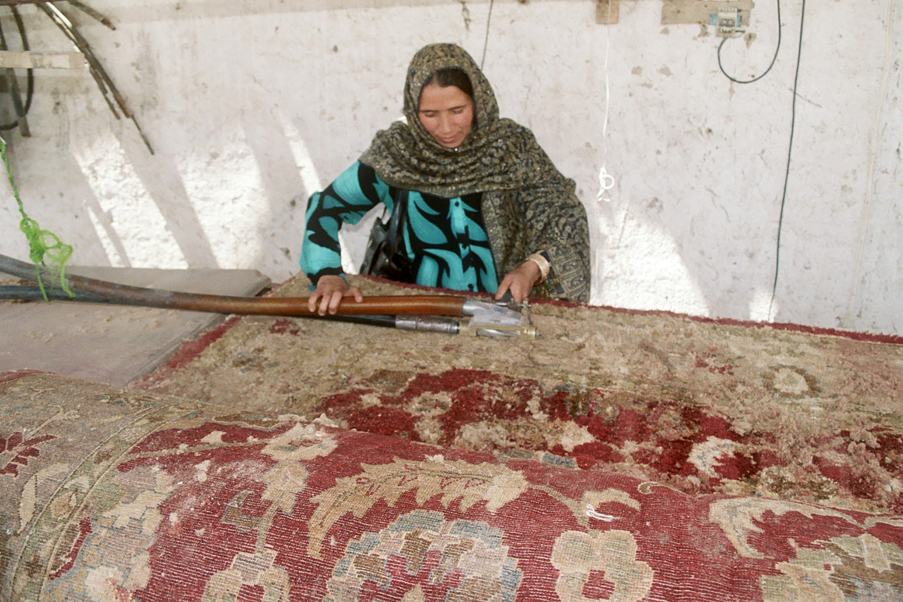 The trimming process, after a carpet has been woven.